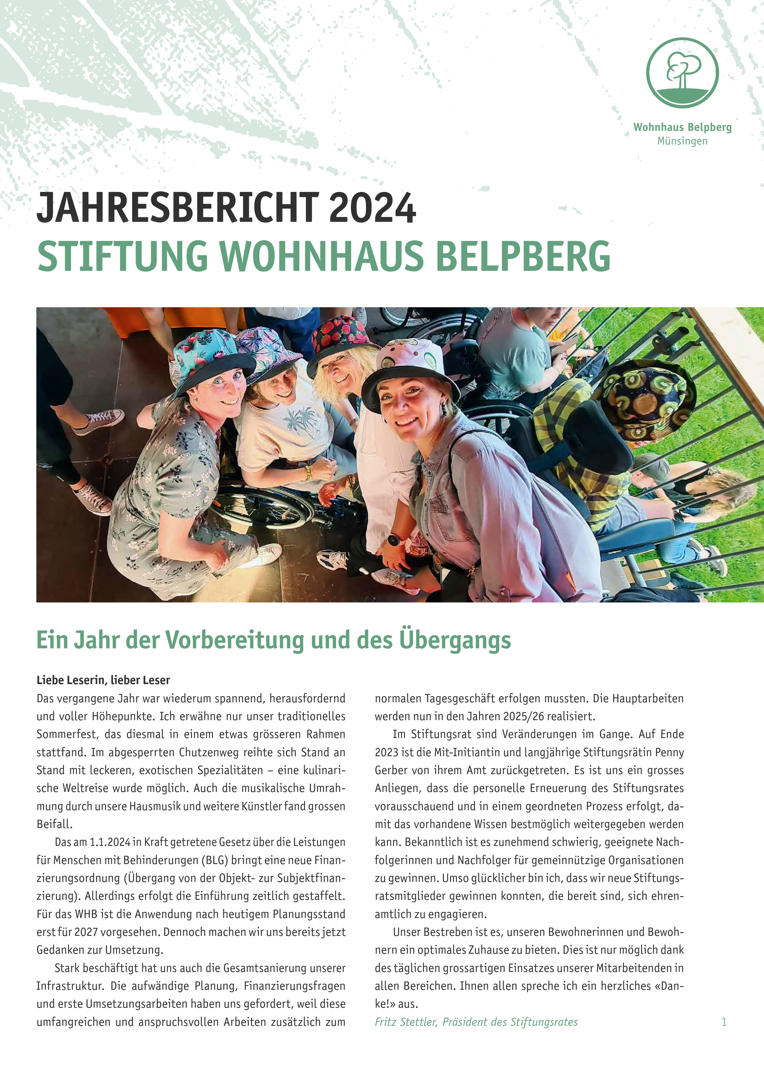 Die «Urschrift Nr. 190» der Stiftung Wohnhaus Belpberg ausgefertigt am 11. Juli 1996 ist das Grundlagendokument und die Basis für alle Tätigkeiten der Stiftung. Die Urkunde ist sicher im Wohnhaus aufbewahrt. Die Stiftung untersteht der Aufsicht durch die BBSA (Bernische BVG- und Stiftungsaufsicht).